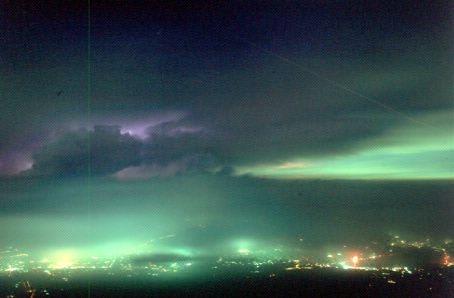 2002.8.14 久須志神社前より 夕方から群馬方面に積乱雲が発生し稲妻が激しく光る。この日は山中湖で花火大会が開催される予定だ。打上花火がとても待ちどうしい。 花火と雷が同時に撮影できるなんて…。お盆真っ最中の仕事疲れも一気に吹き飛んだ。