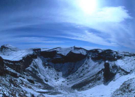2004.7.12 剣ヶ峰より撮影 前日、雷雲が連続3回も山頂を覆った。雷が来る度に電気を止め小屋の中に避難。 外に出ればいつ丸焦げになってもおかしくないのだ。 雷がさったあとの山頂には5センチくらいのあられが降積り7月とは思えない銀世界。あられだるまもできました。 解けてなくなると思ったあられが翌日に残り、ご来光からお昼まで撮影三昧でした。 やっぱり山頂ってすごいよな〜。