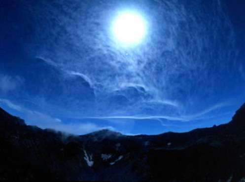 2004.8. 成就岳付近より撮影 小屋前でふと頭上を見上げると雲の巣状の雲が猛スピードで流れていた。 大興奮である。この雲を何年も前から思い描いていたのだから…。 慌てて三脚を担いで火口淵にダッシュ!ブローニーで3本押しまくった。 5分後には雲もなくなり小屋へまたまたダッシュ。(^_^;)