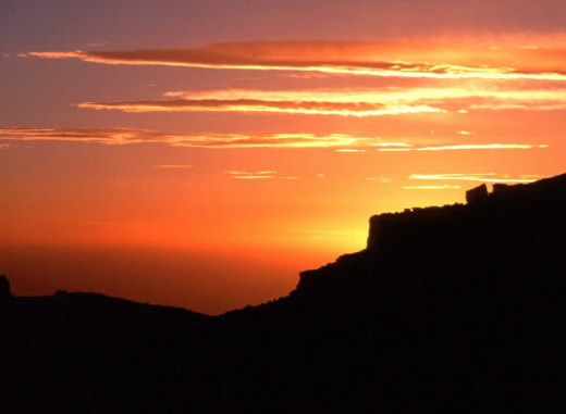 白山岳裏に沈む落陽。夕方の山頂は早朝と違ってとても静かである。日本最高峰富士山頂上にいることをしみじみと実感する。