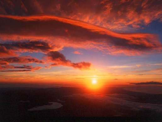 下山日にこんな迫力のある朝焼けが見れるなんて!!驚きと感動でいっぱい、いっぱい。富士に感謝、みんなに感謝…。