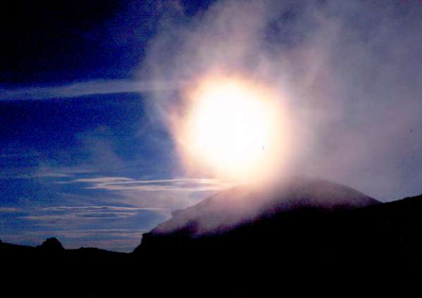 第二高峰である白山岳に太陽が沈む。薄いベール雲が凄いスピード流れた。